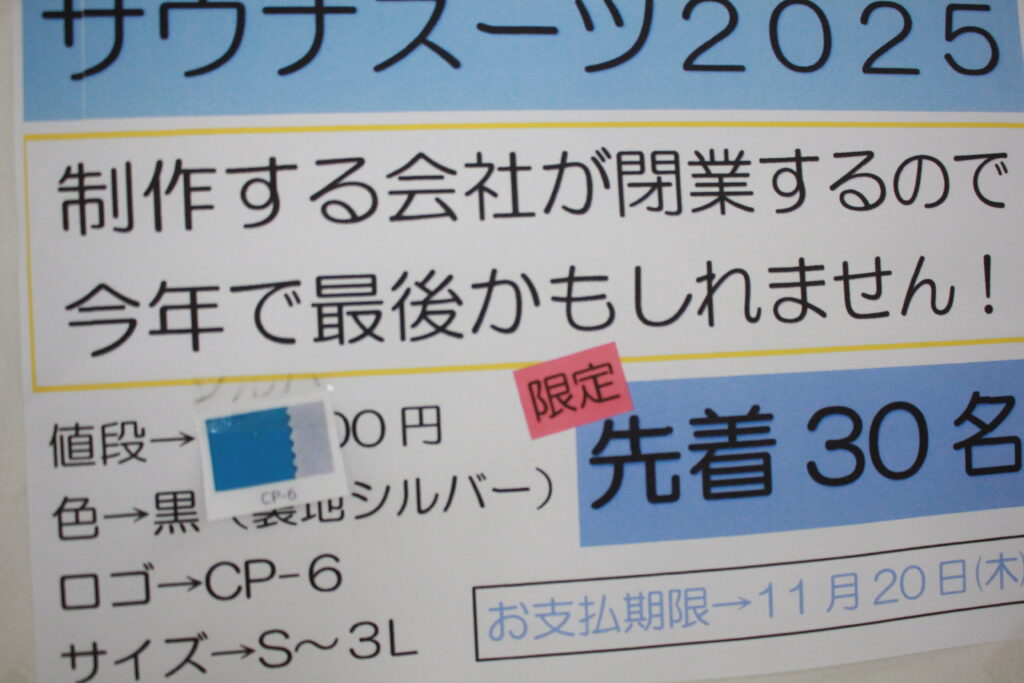 そして、なんと今年で最後になるかもしれないという悲しいお知らせ…そして先着30名の方のみの販売になります!お買い求めの方は、お早めにトレーナーまでお願いいたします!