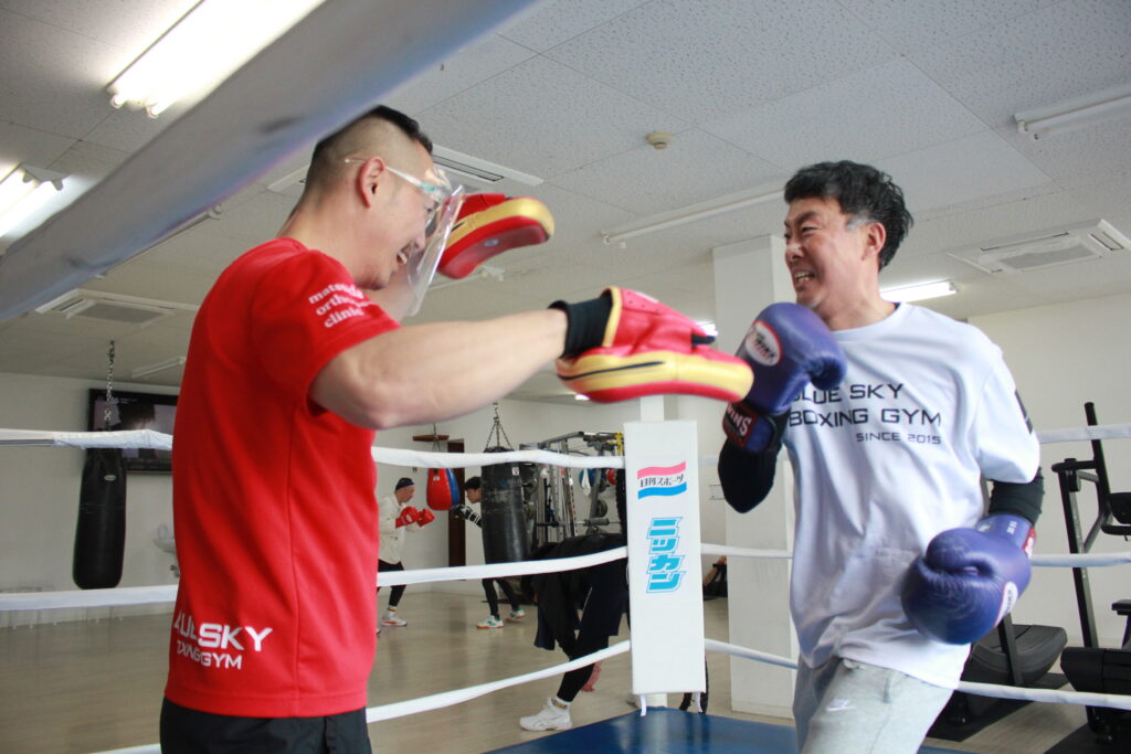 神戸市にあります、初心者さんも女性さんも通いやすく、10代から70代までの会員様が在籍♪ボクシングジムの常識を覆す、広くて清潔なブルースカイボクシングジムです♪
